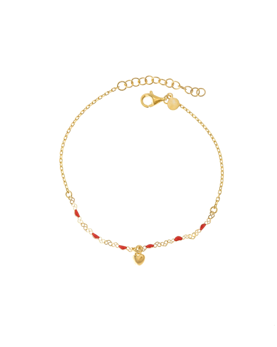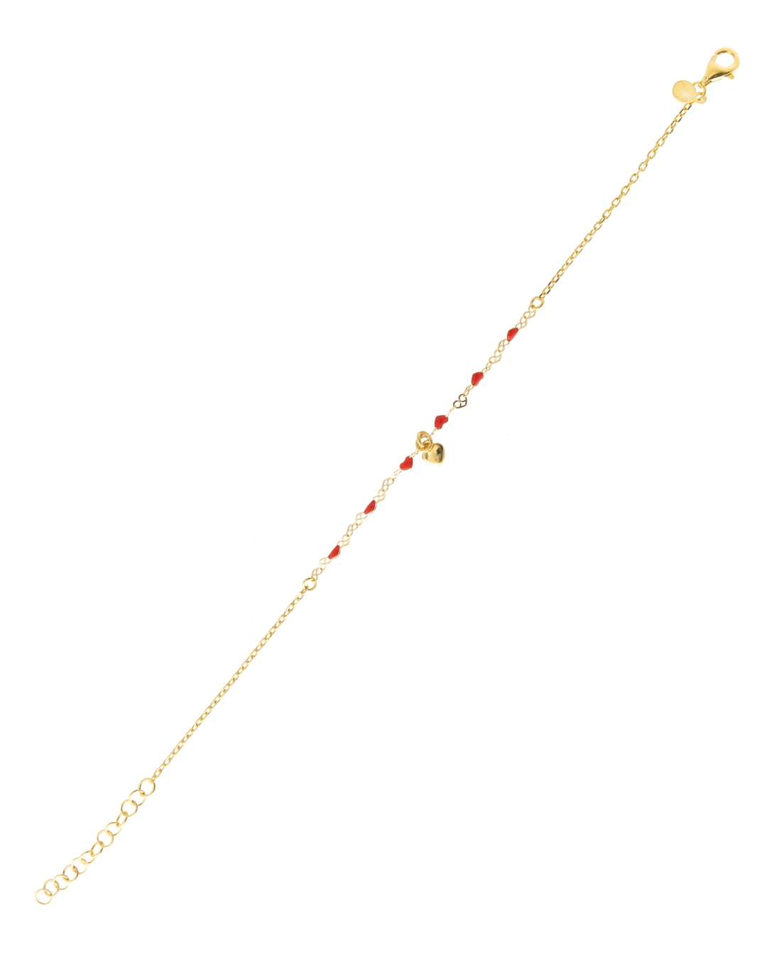 Βραχιόλι ασημένιο-επιχρυσωμένο! Πολύ όμορφο και χαριτωμένο, λεπτό με κρεμαστή καρδούλα και κόκκινες πετρούλες. Μήκος 21cm.