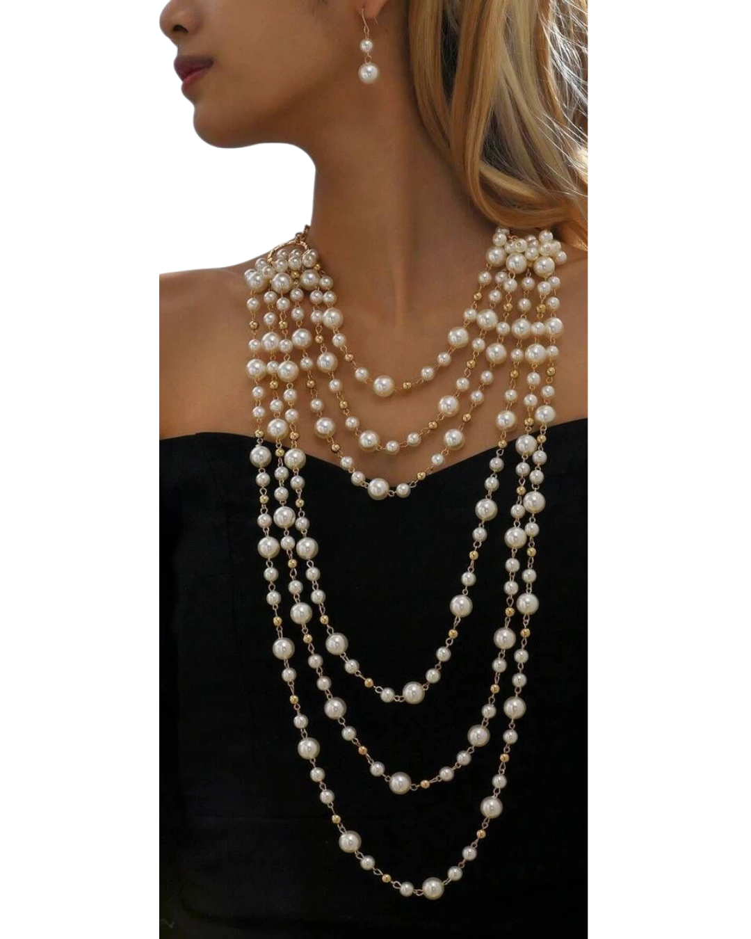 Κολιέ σετ με τα σκουλαρίκια του με πέρλες! Με πολαπλές σειρές πέρλας, όμορφο και εντυπωσιακό! Μήκος 46cm. φορεμένο