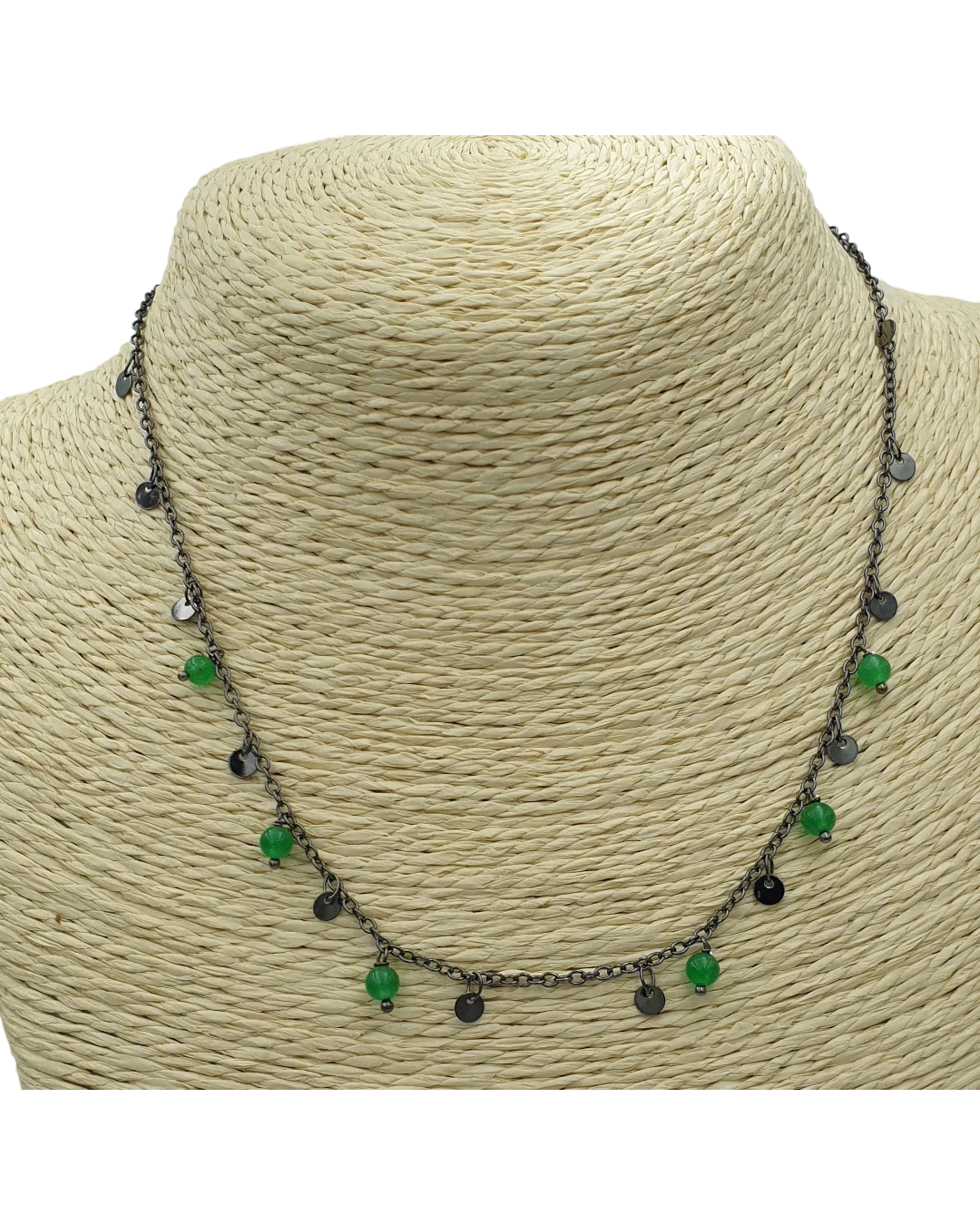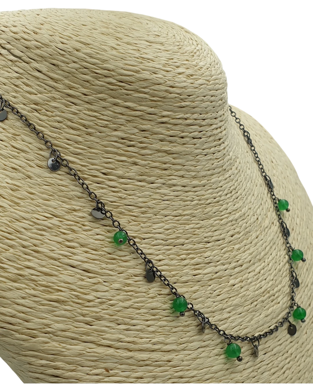 Κολιέ χειροποίητο με jade! Λεπτό και όμορφο με κρεμαστά jade. Μήκος (ανοικτό) 45cm.