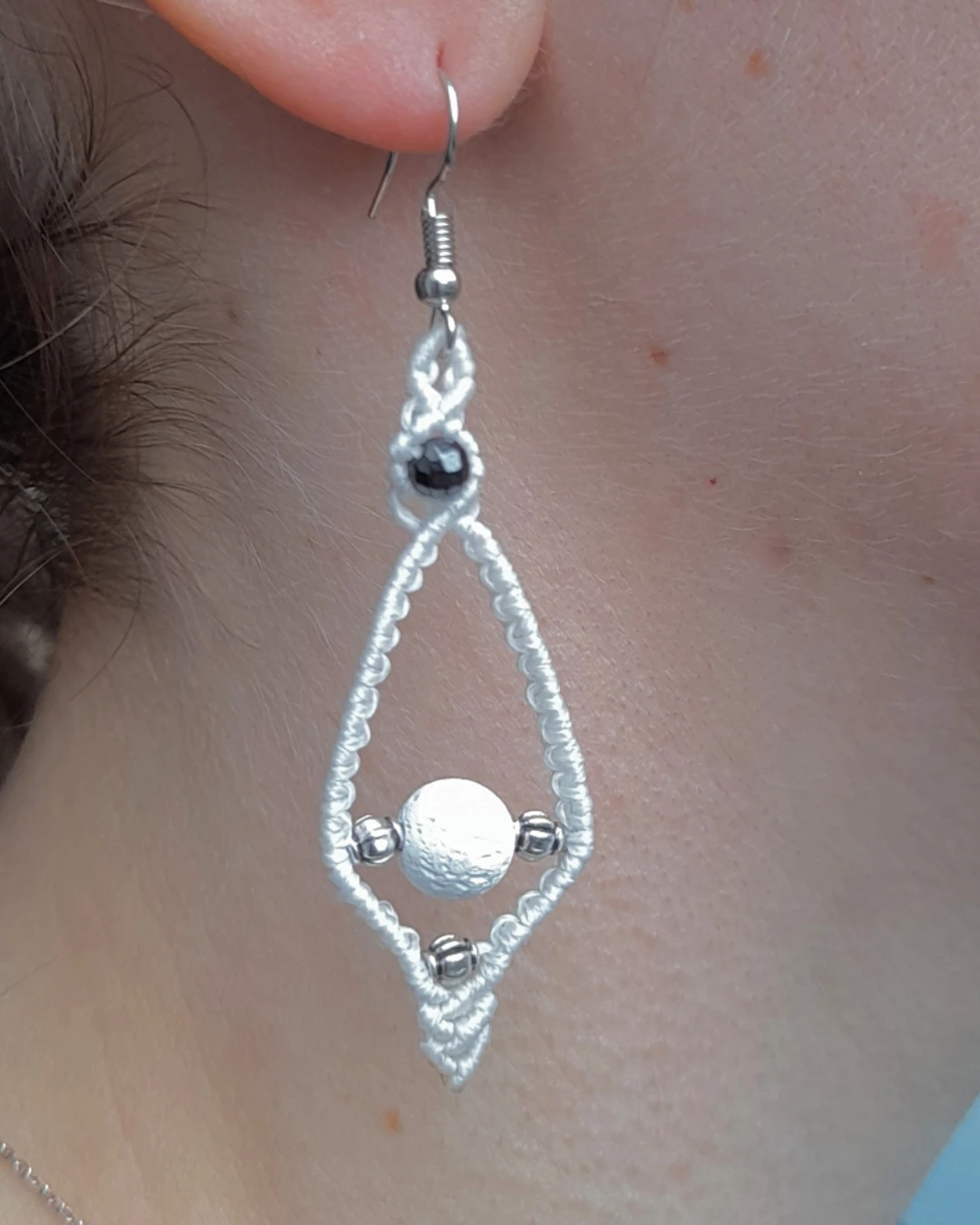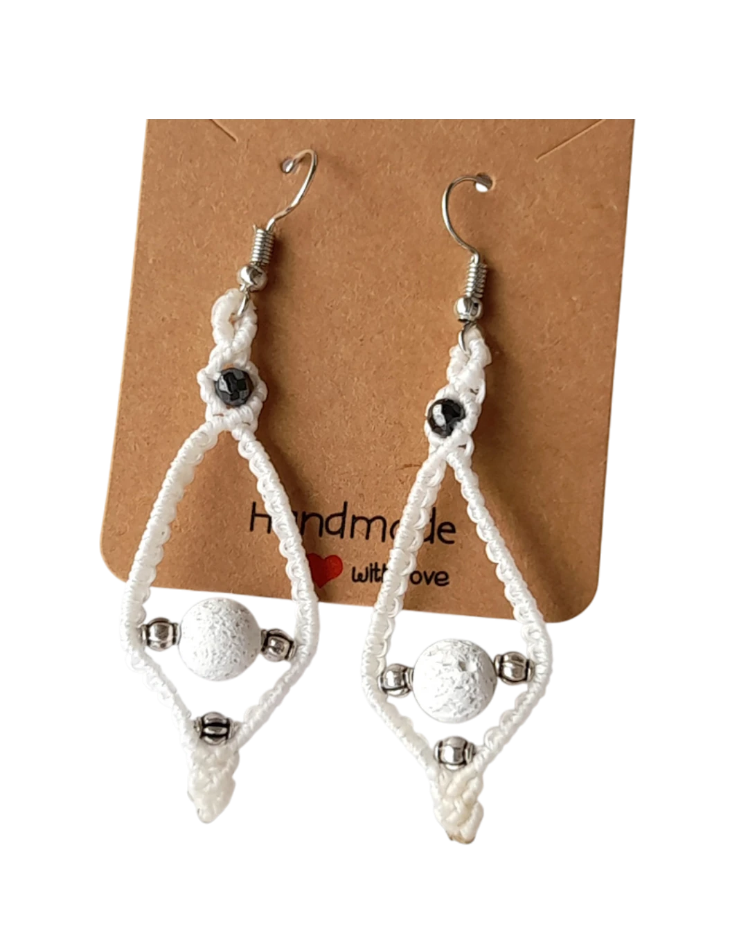 Σκουλαρίκια μακραμέ χειροποίητα “ρόμβος”! Σκουλαρίκια μακραμέ χειροποίητα με κερωμένο νήμα, επάργυρες ή επίχρυσες χάνδρες, αιματίτες και ηφαιστιακές λάβες. Το κούμπωμα ειναι ατσάλινο και υποαλλεργικό. Μήκος 7cm. πλάτος 2cm. Διατίθεται στους 3 χρωματισμούς που βλέπετε.