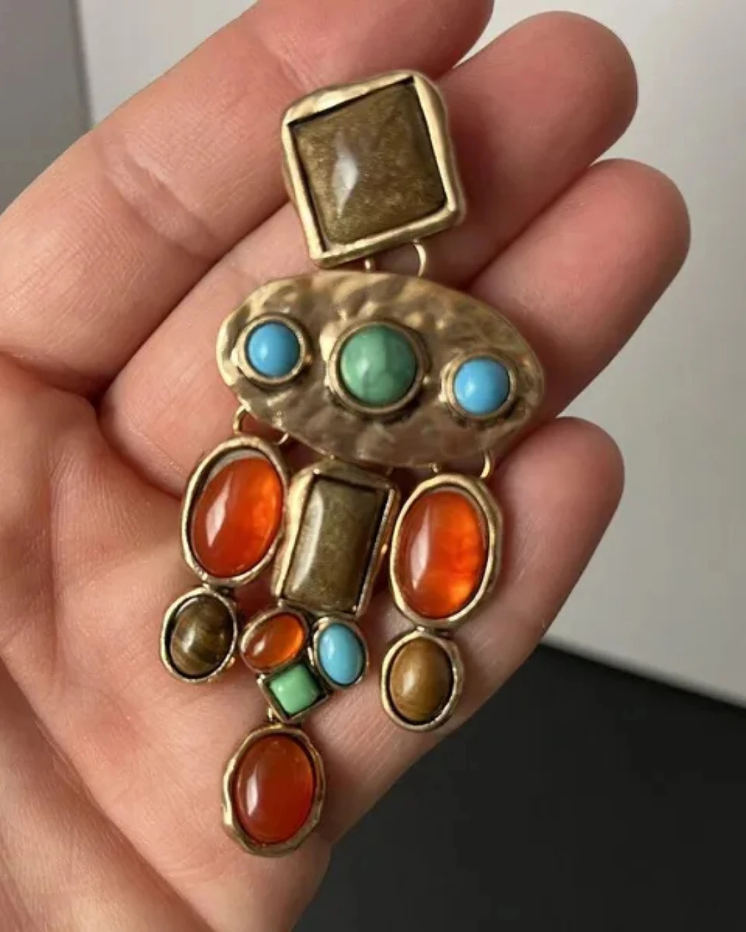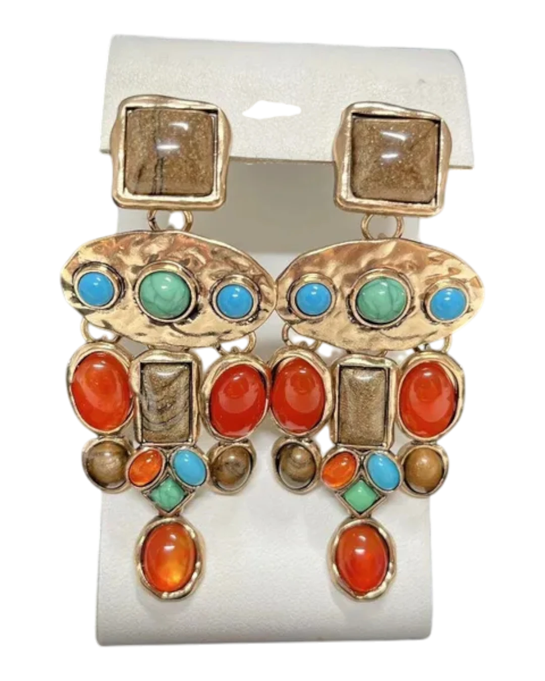 Σκουλαρίκια σφυρήλατα με χρωματιστές πέτρες